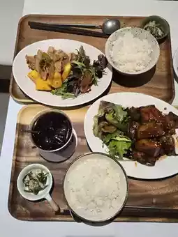 RÊVER in Fo Tan is an upstairs Japanese-style eatery managed by "Practice," specializing in set meals with a simple and comfortable environment. The chicken rice features fragrant roasted chicken thigh, rich in flavor, paired with a slightly sweet curry sauce, creating a distinct and memorable taste. The pork bowl highlights soy-glazed pork with a balanced fat-to-lean ratio, and the savory sauce pairs perfectly with white rice. Lunch comes with coffee, and both hot and cold brew options are great. The menu changes weekly to keep things fresh and occasionally incorporates specialty ingredients from local shops, allowing diners to experience the diversity and creativity of Hong Kong's food culture.