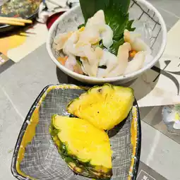 ✅ Sashimi includes salmon, big red shrimp, snow crab legs, Hokkaido scallops, northern clams, sweet shrimp, yellowtail, kingfish, ark shell, razor clams, and more
