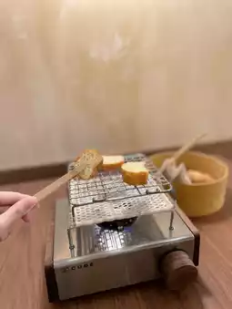 There is a wooden plate plus a small basket filled with bread and snacks, very exquisite, take pictures super praise 🤭 and can play and eat, the staff carefully introduced us to each type of package category, I think the best is the French cream bread, bake for a while and then apply butter 🧈 plus strawberry sauce 🍓 super great 💖 There is also a small muffin can be baked, baked, will have a chocolate melted effect 🤫