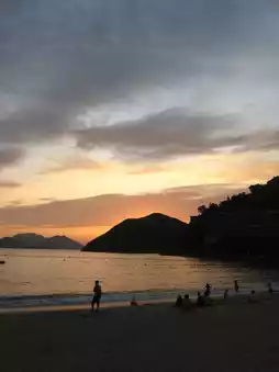 Such a romantic place, many people lie on the beach sunbathing and wading in the water. There are beautiful flower shops and restaurants nearby.
