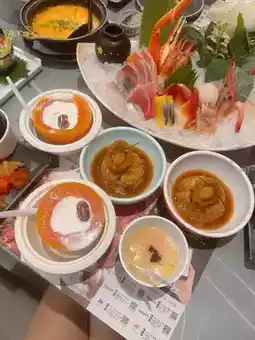 Desserts 🍮 set includes 💰 Movenpick, Haagen-Dazs ice cream 🍨 popsicles, soft serve ice cream 🍦 glutinous rice balls, pudding, cream puffs 🍩 tofu pudding, yogurt 🥛 taro balls, coconut snow fungus stewed milk, candies, etc. 🍬 Must try sea swallow nest coconut stewed papaya 🥥 nourishing and beautifying ☺️ Specially cute shaped lucky mice and pufferfish mousse 🐹🐡 Also available are durian puree, strawberry 🍓 watermelon 🍉 melon 🍈