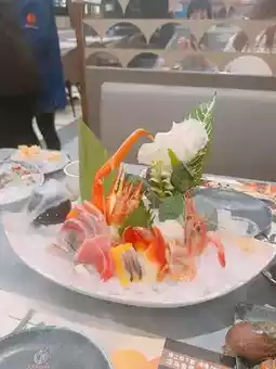 Sashimi 🌊 set includes 💰 octopus, red fish thin slices 🐠 Thai-style raw shrimp, etc. 🇹🇭 Each sashimi is fresh 😋