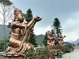 The Buddha statue is incredibly divine and majestic. It's truly a magnificent sight from every angle. What was really special was seeing the traditional temple grounds surrounded by Hong Kong's lush tropical plants; it gave the whole area a serene, almost Southeast Asian temple vibe.