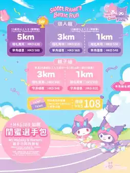 Each participant will receive a limited-edition themed runner's kit and a ticket to The Luna Carnival. From running accessories to post-run activities, you'll be immersed in the lively and adorable atmosphere of My Melody and Kuromi's anniversary celebration.