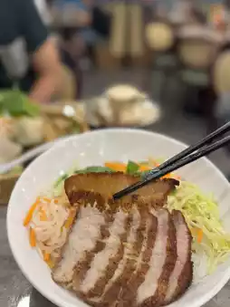 Combining sour, sweet, salty, fresh, fragrant, and spicy flavors, the overall taste is refreshing and appetizing. The pork neck is fragrant and tender, with the aroma of marinade. The pork neck is marinated (with fish sauce, lemongrass, garlic, lime juice, etc.), then pan-fried or grilled to have a slightly crispy exterior and tender, juicy interior. It has a salty, garlicky, lemongrass freshness, and a slight sweetness. The dry noodles are smooth and light; Vietnamese dry noodles are naturally mild and slightly sweet, with a smooth texture that absorbs the sauce and other ingredients well. The fish sauce sweet and sour dressing is the soul sauce.