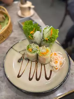 The rice paper skin is mild and slightly chewy, with a soft and elastic texture that perfectly wraps the filling and absorbs the sauce's flavor. The fresh shrimp is bouncy and sweet*, paired with cucumber strips, carrot strips, and lettuce, providing a crisp texture and subtle sweetness. Thai basil and mint leaves bring herbal freshness, the soul of Vietnamese flavor, perfect as a refreshing appetizer for hot weather, low-calorie and healthy.