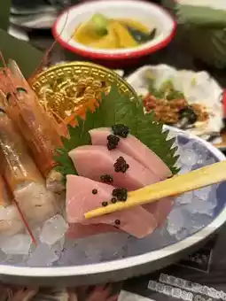 The only Amakusa crab and Botan shrimp buffet in Hong Kong, of course, the Botan shrimp is the highlight—each one is plump, meaty, and sweet. The fatty pink toro, thick-cut salmon and yellowtail, fresh scallops, and crab legs make it a sashimi feast! You can even pair it with caviar!