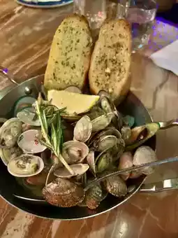 Also comes with two pieces of crispy garlic bread to soak up the seafood juice