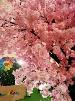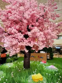 The limited store transforms into a dreamy garden, combining sunflowers and vibrant colors, along with a cherry blossom mirror wall and eye-catching large hanging floral art installations, as if you are in a sea of flowers and forest encountering colorful sandals left by a fairy. A must-visit spot for photos!