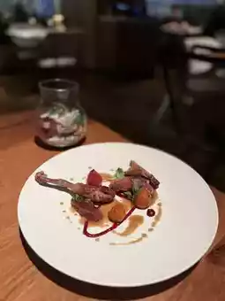 For the main course, Italian wontons stuffed with oxtail, served with pan-seared foie gras, black garlic, and hazelnuts, rich in flavor. The oxtail inside the wontons is savory with a cheesy aroma, and the foie gras is buttery. The other main dish, Bresse Pigeon, features tender French Bresse pigeon meat, paired with sweet beetroot and fragrant cardamom, beautifully plated 😍