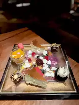 For dessert, we added the Picasso dessert feast. This dessert is really creative! The restaurant provides a plate for customers to freely paint their favorite patterns with sauces, creating colorful designs, then the staff adds carefully crafted desserts on top. Perfect for photos and tastes great too!