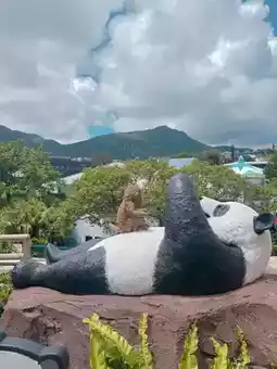 Haven't been to Ocean Park for a long time. A friend had free tickets, so of course, I went to visit the pandas 🐼 first. The first stop was to see the elder sister and younger brother pandas. Both 🐼 were very active, climbing trees, eating bamboo, and playing around. They were really adorable and funny, with lots of interaction between the two 😍.