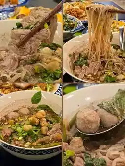 The broth of the Thai boat noodles is very rich, with a subtle hint of spices. The wagyu beef is tender, the beef balls are bouncy, and the rice noodles soak up the rich broth flavor while still maintaining a good texture without becoming mushy.