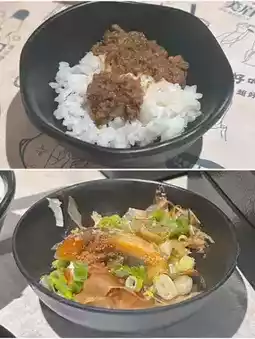 , taro strips, squid ๐ฆ, frozen tofu, mushrooms ๐๐ซ, assorted balls ๐ข, noodles ๐, eggs ๐ฅ, crispy wontons, spicy beef soup rice ๐ถ๏ธ, and authentic braised beef rice ๐.
