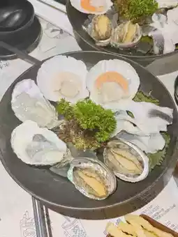 Seafood Platter ๐ Included in the set ๐ฐ: Abalone, Scallops ๐, Oysters ๐ฆช, Fish ๐. All four seafood options are fresh and sweet ๐.