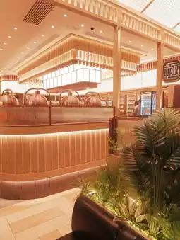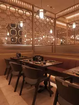 Luxuriously decorated with shiny copper tones, seating arrangement is a bit tight.