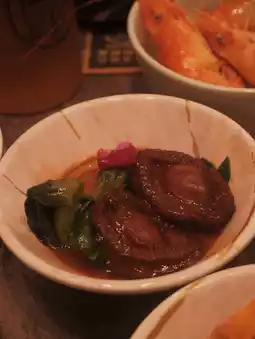 𖦹 Ji Pin Abalone Sauce Shiitake Mushrooms: Bite-sized, moderately tender, rich abalone sauce flavor