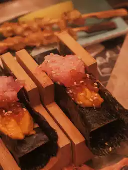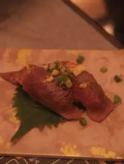𖦹 Seared Kai Island Special Wagyu Sushi: Small pieces with intense meat flavor