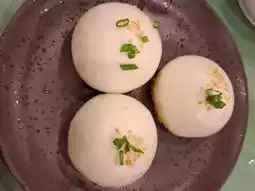 For dessert, the red bean paste pancake is filled with plenty of red bean paste, best enjoyed hot.