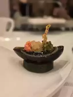 Next was the century egg paired with minced ginger and chili, served with ice-flower century egg. The flavor was rich and mellow. The third item, sea cucumber, highlighted the heritage element of shrimp paste, creating a rich and savory starter.