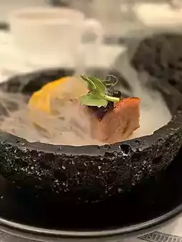 Traditional dim sum is an essential part of Hong Kong's culinary culture. The "Fragrant Jade Dumpling" was filled with duck meat, offering a unique and delicious twist. Also featured was the homemade thick-cut char siu, prepared with fermented bean curd and served on crispy rice crackers. These familiar ingredients from our childhood were combined in a way that felt both nostalgic and novel.