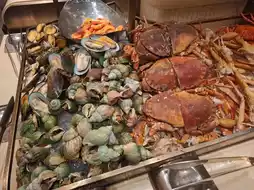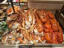 ✨Here are my favorite dishes: lobster, bread crab, snow crab, fresh abalone, oysters, local cold whelks, and mussels – all very fresh❤️ The bread crab is big and full of roe; I ate 3 by myself🤣 The abalone is large and tender😱 so refreshing, not tough at all🤭 The oysters come in big and small sizes🤣 Personally, I like the smaller ones because I can enjoy the taste and still save room for other dishes😆 My personal recommendation is 50% seafood, 40% hot dishes, 5% desserts, and 5% salad🥳