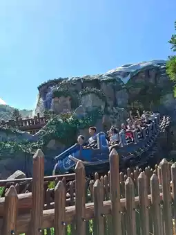 Wandering Oaken's Sliding Sleighs is another ride at Hong Kong Disneyland in the World of Frozen zone that we really, really love. Although the ride is short, it’s exciting and thrilling, with lots of screams 😆. It recreates the atmosphere of snow and ice mountains. You get to ride a sleigh designed like the one in Frozen, sliding along a winding track at just the right speed. Along the way, you can enjoy beautiful views of Arendelle and hear the lovely songs from the movie, making the ride even more enjoyable. You can see the Frozen castle in the distance. When we went, there were a lot of people in line, so it’s best to go early in the morning. But if you buy a special ticket, you don’t have to wait long at all.