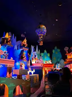 💫 Sailing through a dream world filled with cute dolls from various countries dressed in traditional costumes singing “It’s a Small World” in different languages. The interior is decorated with bright colors and sparkling lights, creating a very dazzling atmosphere. It’s cool and comfortable inside with no thrills, but it helps cool you down and gives you a break from the excitement and scares of other rides. It takes about 10 minutes, and there’s a photo spot inside, so don’t forget to smile for the camera 😄