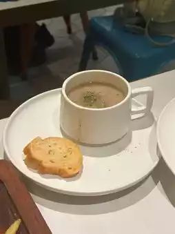 Black Truffle Porcini Mushroom Soup🥣 Included in the set💰 The truffle and porcini mushroom flavor is rich🍄🟫 Also served with toast🍞