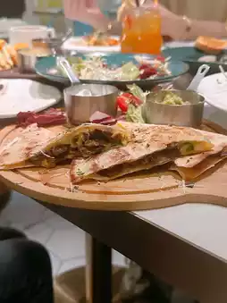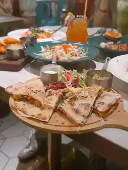 Beef Cheek Mexican Cheese Quesadilla🌮 Included in the set💰 Crispy outside and soft inside😗 The beef cheek meat is tender🥩 with plenty of semi-melted stretchy cheese🫕 Dipped in sour cream and avocado sauce☁️🥑 for a richer taste🤤