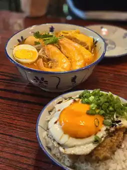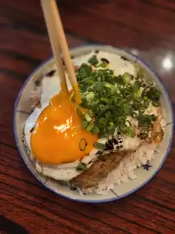 Another popular dish is the "Pan-fried Crispy-edged Egg and Pork Patty Rice." The patty is thick, the egg is fried to a crispy edge, and the egg gravy soaks into the rice. The rice is topped with a homemade soy sauce and chopped green onions, and almost every table orders it. The prices are reasonable, making it a prime example of affordable North Point dining.