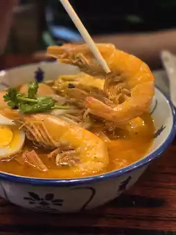 One of their signature dishes is the "Lak Sala," featuring a rich, mildly spicy broth, a perfect blend of coconut and spices, and a rich selection of toppings like fish balls and tofu puffs, all in a Hong Kong-style Malay style.