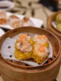 The crab roe siu mai is filled with authentic pork and shrimp, resulting in a firm and springy texture!