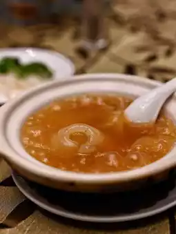 🌟 Braised Clay Pot Shark's Fin features premium, thick, distinct shark's fins weighing 300 grams, simmered slowly in a secret abalone sauce. The broth is perfectly thick, and the shark's fin melts in your mouth with a rich, gelatinous texture—a classic Cantonese dish! Add Zhejiang vinegar to enhance the flavor, and add silver sprouts for a more complex flavor.