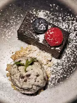 For dessert🍮, today's House Made Daily Special Dessert is Chocolate Brownie with Cookies & Cream Icecream🍨. Brownie is rich in chocolate 🍫, sticky with a moist taste, and is served with iced ❄️ Cookies & Cream ice cream, sweet but not greasy ✨, making this high-quality Western meal a perfect ending 🎉!