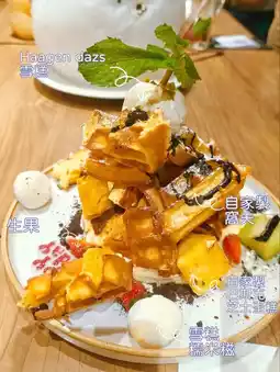 After opening the transparent cylinder there are Haagen-Dazs ice cream, fresh fruit, Basque cheesecake pieces, ice cream glutinous rice, waffle cushion.