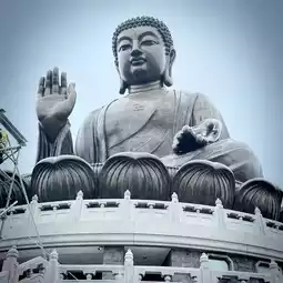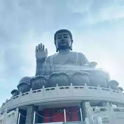 🛕Visit the Big Buddha, or Tian Tan Buddha, a prominent landmark in Hong Kong. Nestled amidst tranquil nature, visitors are greeted by a grand, imposing archway. A lotus pedestal stands at the front, believed to energize visitors and bring good fortune. The temple grounds are lush and green.