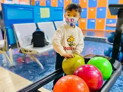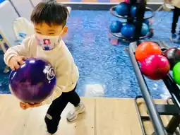 This court is very popular because of its low fees. During peak hours, you may have to wait for one to two hours. We recommend that you avoid going there during school breaks or holidays. Staff can help set up the bar. It is suitable for children to play. We bought a 4-pound ball, which Shawn could also lift. Shoe rental is $6. If there is no suitable size, you can wear your own shoes. The charge is $100 for one hour of play, and you can also add time for half an hour. Due to the epidemic, the gathering is limited to 4 people. The average cost per person is $25 per hour, which is very worthwhile!