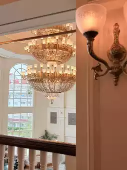 The Hong Kong Disneyland Hotel resembles a palace straight out of a fairy tale. From its magnificent Victorian-style architecture to its intricate details, every aspect immerses you in Disney storylines, letting you indulge in an elegant and timeless atmosphere. The six-story hotel perfectly blends the nostalgic charm of a seaside resort with Disney's magical ambiance. Equipped with modern facilities, the grand lobby features live music performances, offering guests a luxurious and sophisticated stay.