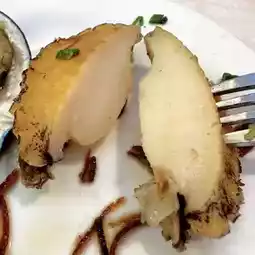 I always eat pepper and salt bacon every time I come here. This time I'll change the taste! Restore the basic steps chose steamed bacon with fruit peel to eat, palm Size of Dalian bacon thick enough to eat a lot of things! Steaming with fruit peel can especially taste the aroma of fruit bacon. It is recommended that people who are afraid of heat order steamed bacon.