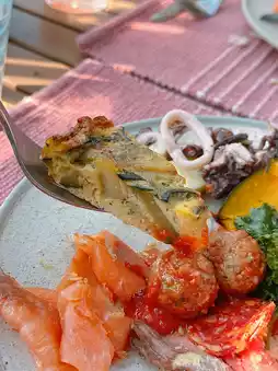 🥗A wide selection of Italian cold appetizers Includes a variety of Italian frozen meats, cheeses, and pickled vegetables. The housemade buffalo mozzarella has a smooth texture and a natural milky aroma. The sweet and juicy honeydew melon paired with the savory Parma ham is a classic Italian delicacy you can't miss. The Argentinian red shrimp and crab claws in the frozen seafood are savory, fresh, and juicy. The grilled squid in the cold salad with olive oil is incredibly bouncy and worth a try.