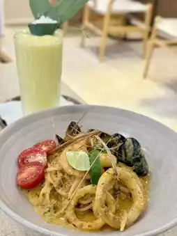 First up is the Coconut Tom Yum Seafood Spaghetti 🍝, which was truly a pleasant surprise! The Tom Yum soup flavor was very prominent—tangy and spicy, making it incredibly appetizing. The seafood was fresh, featuring shrimp, squid, mussels, and more, with generous portions. The spaghetti was cooked al dente, giving it a chewy texture, and it absorbed all the essence of the Tom Yum soup base, making it irresistibly flavorful.