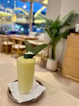 As for drinks, the Mango Sticky Rice Coconut Milk Smoothie and the Iced Thai Tea with Golden Ratio were both excellent choices. The smoothie had a rich mango flavor and included chewy bits of sticky rice, offering a delightful texture. The Thai tea had a perfect balance of tea and milk flavors, with just the right amount of sweetness.