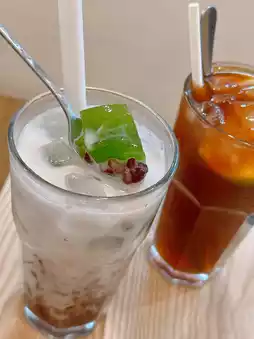 Add the coconut milk pandan jelly red bean ice special! 🫘 The coconut flavor is rich, and the red beans are cooked softly. The addition of chewy pandan jelly adds a nice texture, with just the right amount of sweetness without being cloying. 🍋 Iced lemon tea, with its lime and lemon base, is refreshing with a subtle sweetness that helps alleviate the greasiness.