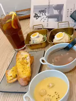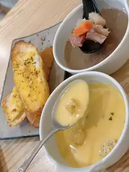 Both the Chinese and Western soups were excellent. 🥣The Kudzu, Red Bean, and Pork Bone Soup was generously prepared and refreshingly sweet. 🎃The Pumpkin Cream Soup was rich and smooth, with a hint of natural pumpkin sweetness. 🥖 Served with a crispy garlic bun, it was a delicious side dish.