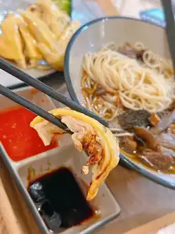 The Hainanese chicken is tender and boneless, making it a convenient meal. 🐔 Dip it in Hainanese chicken dark soy sauce and chili sauce for an even more delicious flavor. 🍜 Paired with the fragrant chicken noodle soup, the broth is infused with five-color mushrooms, creating a sweet and savory mushroom broth with a natural mushroom aroma. The overall flavor is refreshing and healthy, and the noodles are thin and slippery.