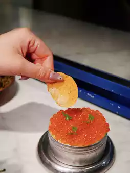 Topped with salmon roe, fresh and plump, with a perfect amount of marinating.