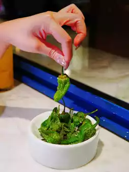 Used from Galicia, Spain, they have a slightly wrinkled, vibrant green skin, a thin, tender flesh, and are fried in refined olive oil and sprinkled with sea salt. They have a subtle peppery aroma and a hint of olive oil.