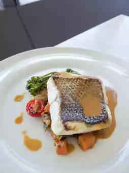 🍽️ Pan-Seared European Sea Bream with Vegetables and Lobster Sauce