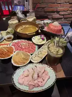 The restaurant specializes in Hong Kong-style hot pot, offering over 20 hot pot broths and over 100 hot pot toppings. The restaurant features traditional and elegant Chinese-style dΓ©cor, with blue brick walls, red lanterns, Chinese-style tables, and calligraphy and paintings, creating a sense of antique charm. The restaurant is spacious and comfortable, giving it a sense of spaciousness.